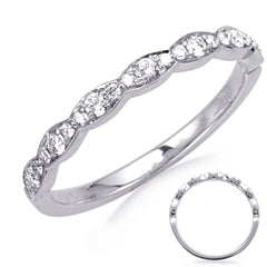This Band is available in 14K White Gold. There are a total of 21 stones. There are Round with a total carat weight of 0.26 set in a Micro Prong setting.