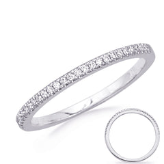 This Band is available in 14K White Gold. There are a total of 29 stones. There are Round with a total carat weight of 0.12 set in a Micro Prong setting.