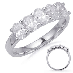 This Band is available in 14K White Gold. There are a total of 5 stones. There are Oval with a total carat weight of 0.9 set in a Prong Set|Shared Prongs setting.