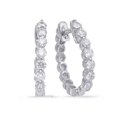 This Earring is available in 14K White Gold. There are a total of 14 stones. There are Rounds with a total carat weight of 0.3 set in a Prong Set setting.