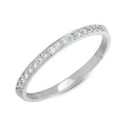 This Band is available in 14K White Gold. There are a total of 17 stones. There are Round with a total carat weight of 0.15 set in a Micro Pave setting.