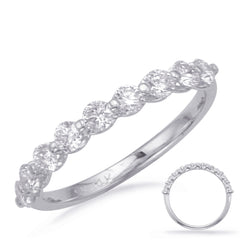 This Band is available in 14K White Gold. There are a total of 9 stones. There are Round with a total carat weight of 0.65 set in a Prong Set|Shared Prongs setting.