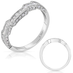 This Band is available in 14K White Gold. There are a total of 44 stones. There are Princess with a total carat weight of 0.48 set in a setting.There are Round stones with a total carat weight of 0.11 set in a .