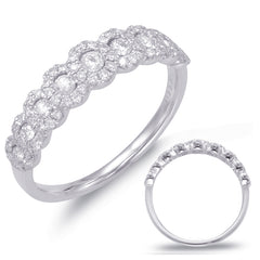 This Band is available in 14K White Gold. There are a total of 77 stones. There are Round with a total carat weight of 0.5 set in a setting.