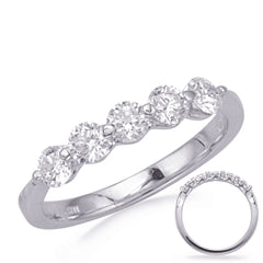 This Band is available in 14K White Gold. There are a total of 5 stones. There are Round with a total carat weight of 0.8 set in a Shared Prongs setting.