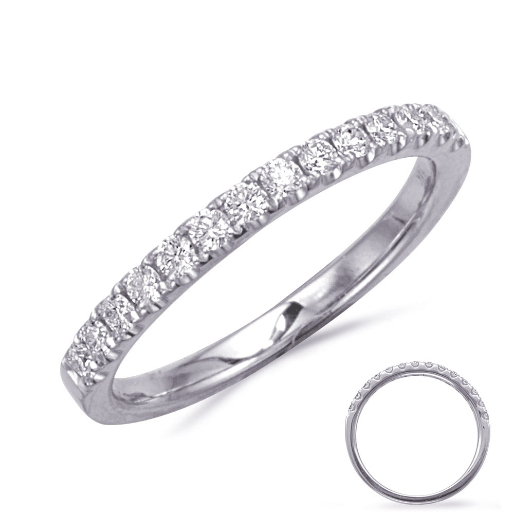 This Band is available in 14K White Gold. There are a total of 14 stones. There are Round with a total carat weight of 0.3 set in a Micro Prong setting.