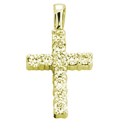 This Pendant is available in 14K Yellow Gold. There are a total of 11 stones. There are Rounds with a total carat weight of 0.33 set in a setting.