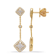 This Earring is available in 14K Yellow Gold. There are a total of 110 stones. There are Rounds with a total carat weight of 0.7 set in a Bezel Set|Micro Prong setting.