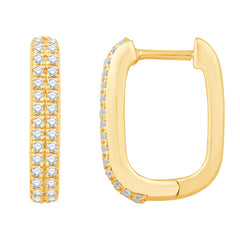 This Earring is available in 14K Yellow Gold. There are a total of 60 stones. There are Rounds with a total carat weight of 0.31 set in a Micro Pave setting.