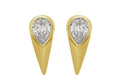 This Earring is available in 14K Yellow Gold. There are a total of 2 stones. There are Pear Shape with a total carat weight of 0.29 set in a Bezel Set setting.