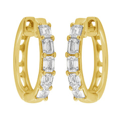 This Earring is available in 14K Yellow Gold. There are a total of 10 stones. There are Emerald Cut with a total carat weight of 0.75 set in a setting.