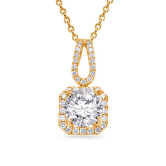 This Pendant is available in 14K Yellow Gold. There are a total of 35 stones. There are Rounds with a total carat weight of 0.2 set in a Micro Prong setting.