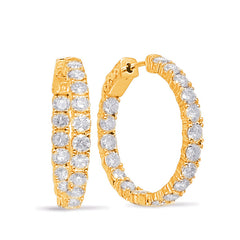 This Earring is available in 14K Yellow Gold. There are a total of 36 stones. There are Rounds with a total carat weight of 5.4 set in a Prong Set setting.