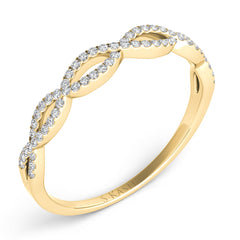 This Band is available in 14K Yellow Gold. There are a total of 57 stones. There are Round with a total carat weight of 0.2 set in a Micro Prong setting.