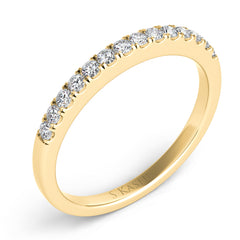 This Band is available in 14K Yellow Gold. There are a total of 14 stones. There are Round with a total carat weight of 0.26 set in a Prong Set setting.