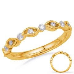 This Band is available in 14K Yellow Gold. There are a total of 9 stones. There are Round with a total carat weight of 0.2 set in a Channel Set|Prong Set setting.