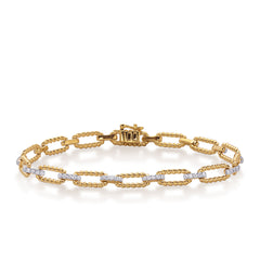 This Bracelet is available in 14K Yellow & White Gold. There are a total of 70 stones. There are Round with a total carat weight of 0.67 set in a Micro Prong setting.