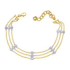 This Bracelet is available in 14K Yellow & White Gold. There are a total of 15 stones. There are Round with a total carat weight of 0.64 set in a setting.