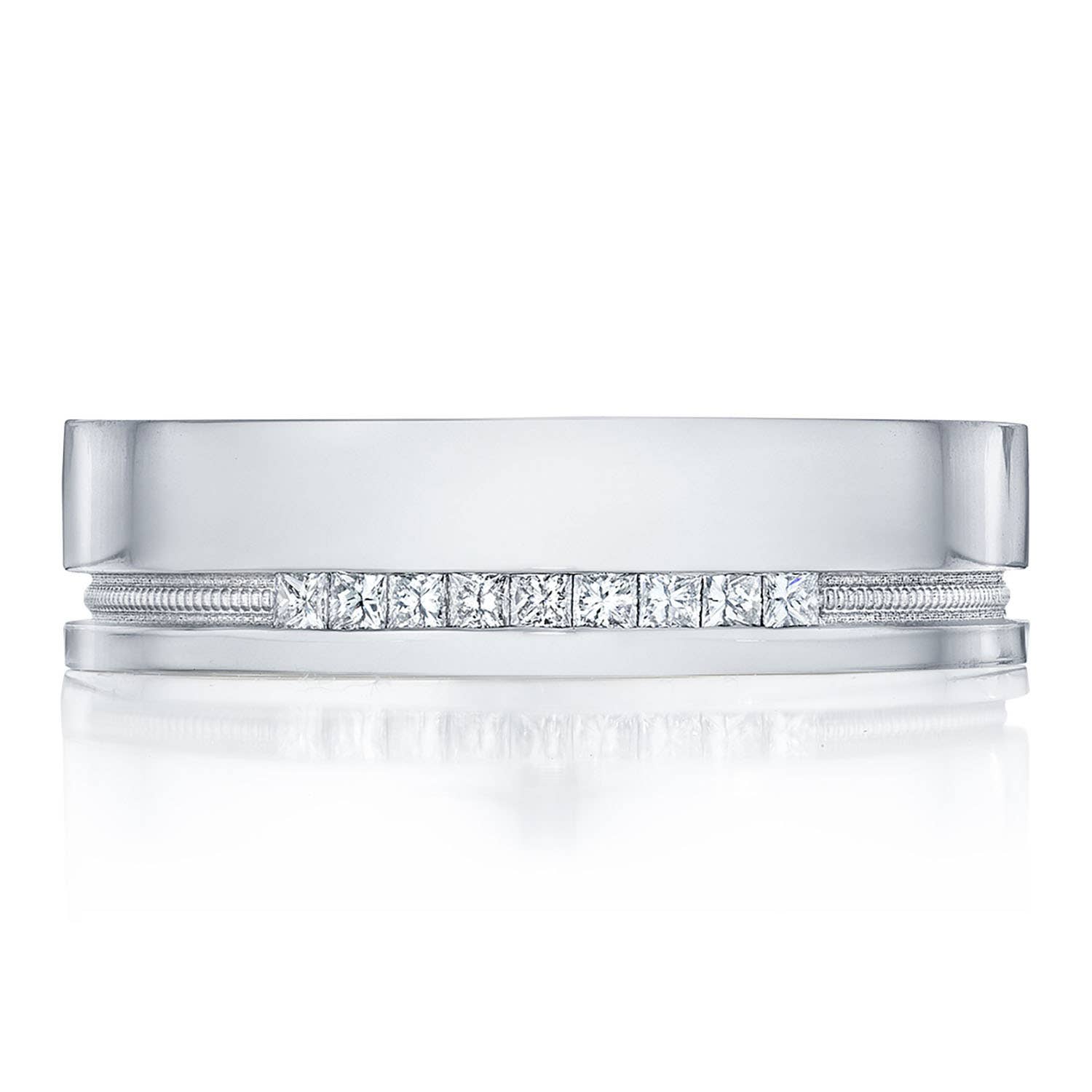 White 18 Karat Polished And Millgrain Edge Channel Set Men's Diamond Wedding Band Size 10 With 9=0.20Tw Princess Cut G In Color Vs-2 In Clarity Diamonds, BY TACORI 108-6WD
