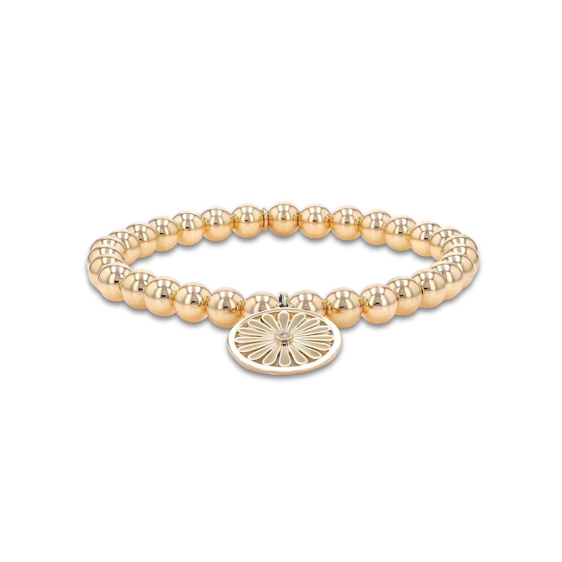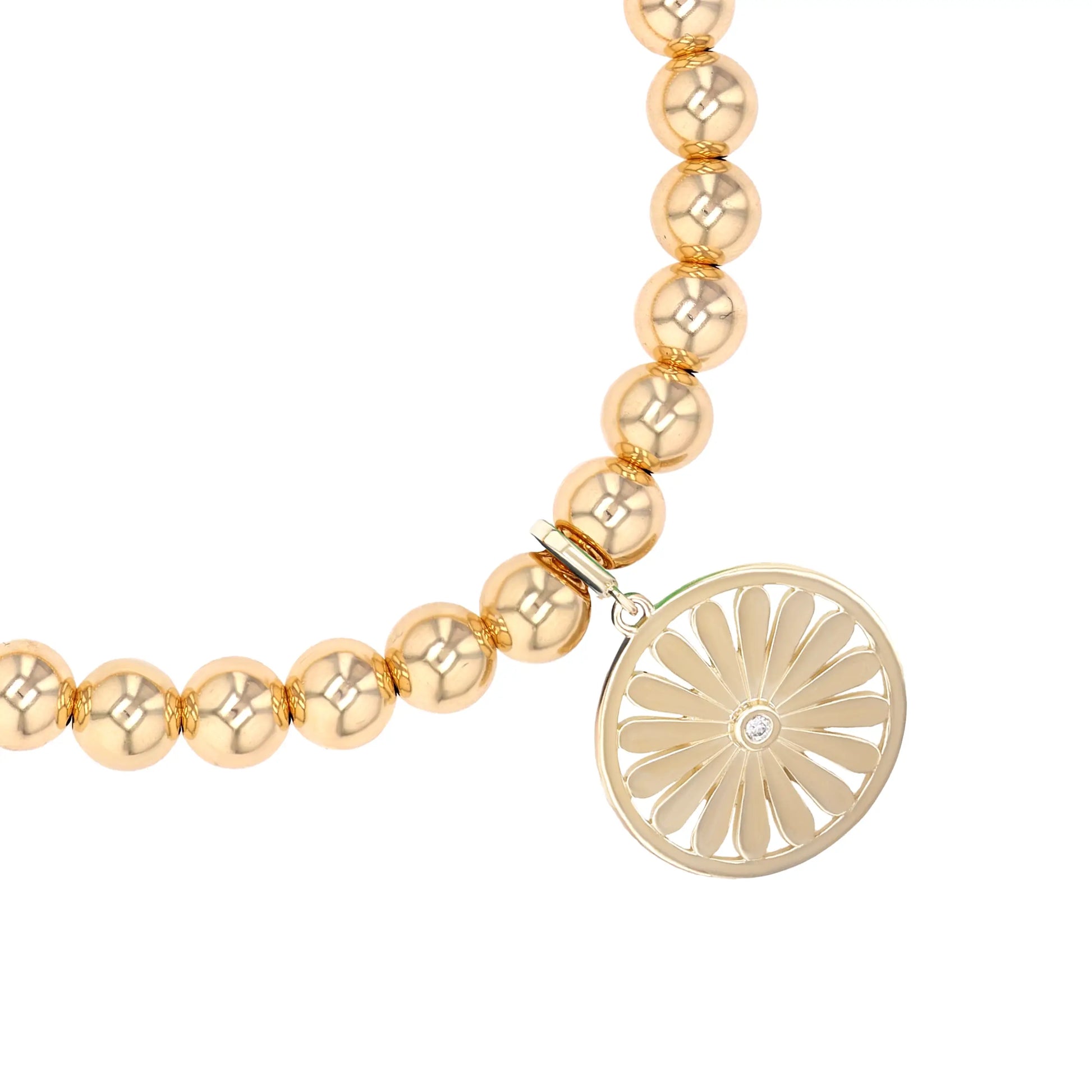 14k Bali Beaded Bracelet with Daisy Charm - 6mm