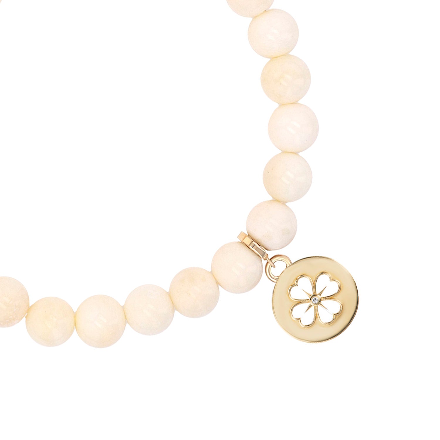 14k Bone Bracelet with Open Clover Charm - 8mm