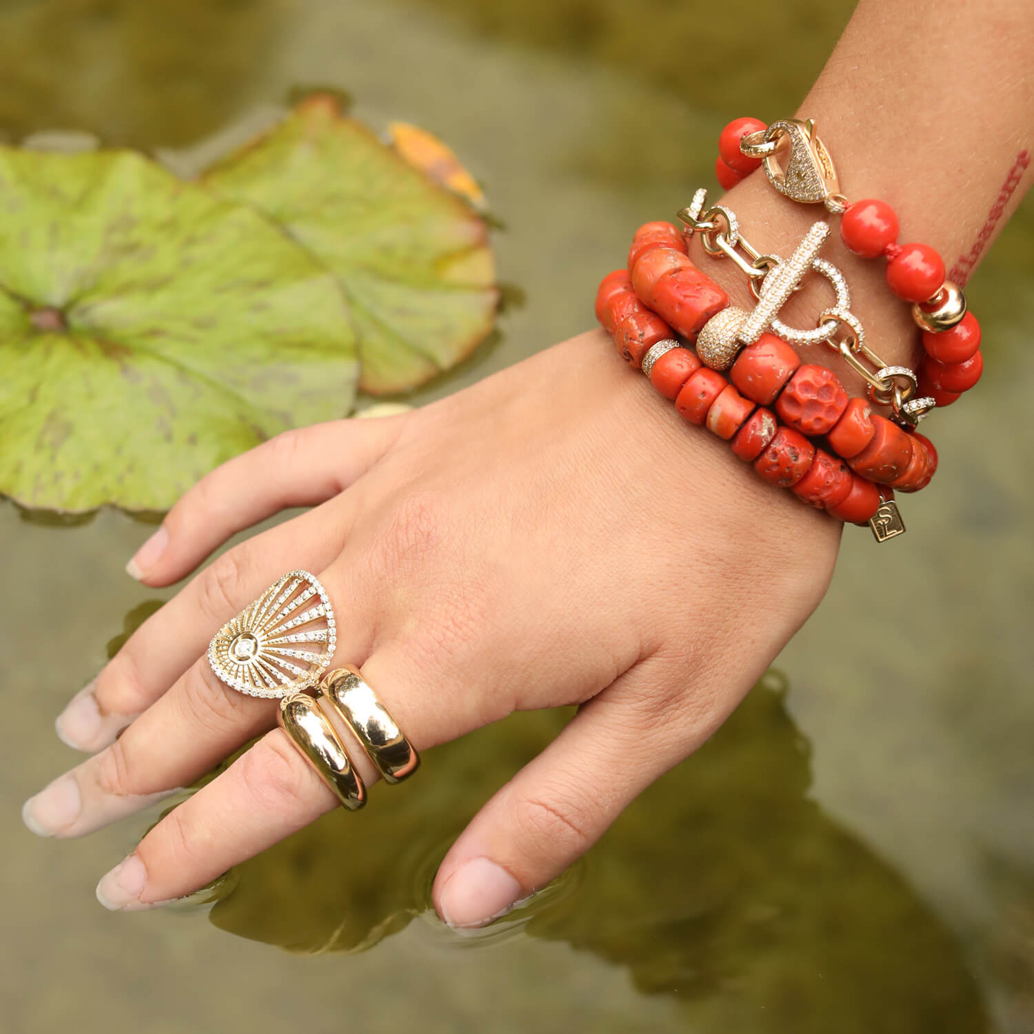 Comfortable saddle style ring that hugs the finger. One of Sheryl's favorite symbols, the sunrise represents new beginnings.