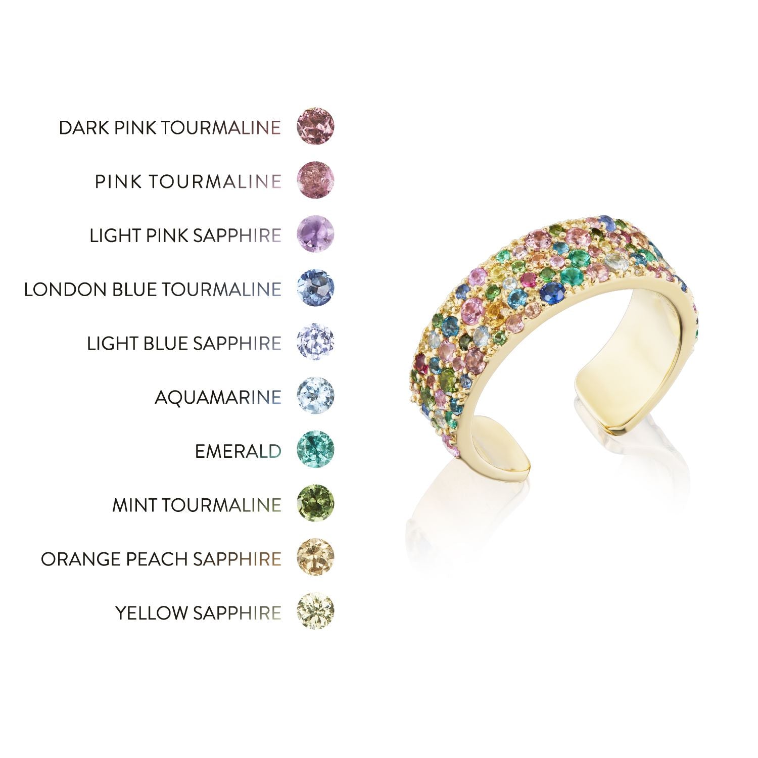 14k Mini Rainbow Cobblestone Confetti Cuff Ring