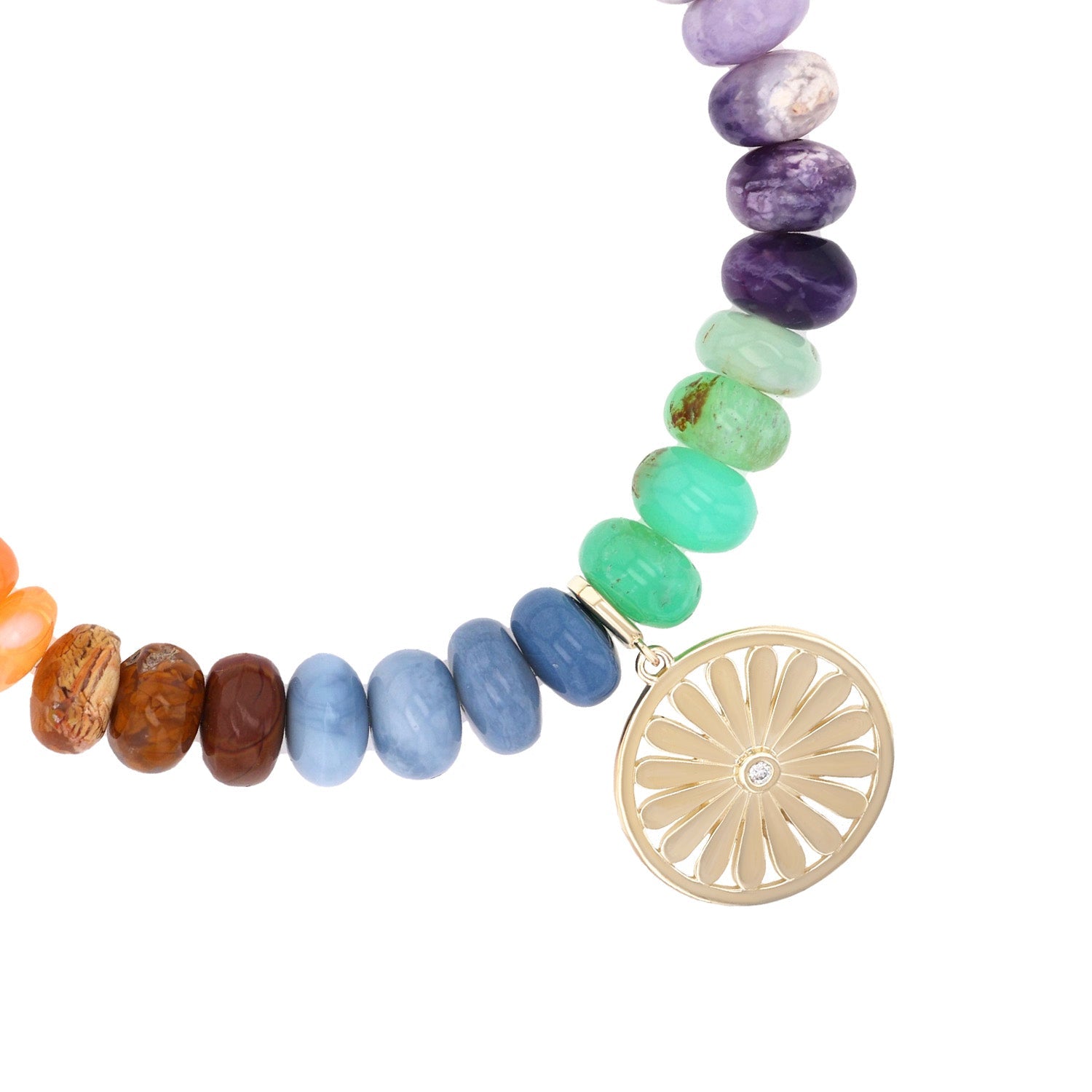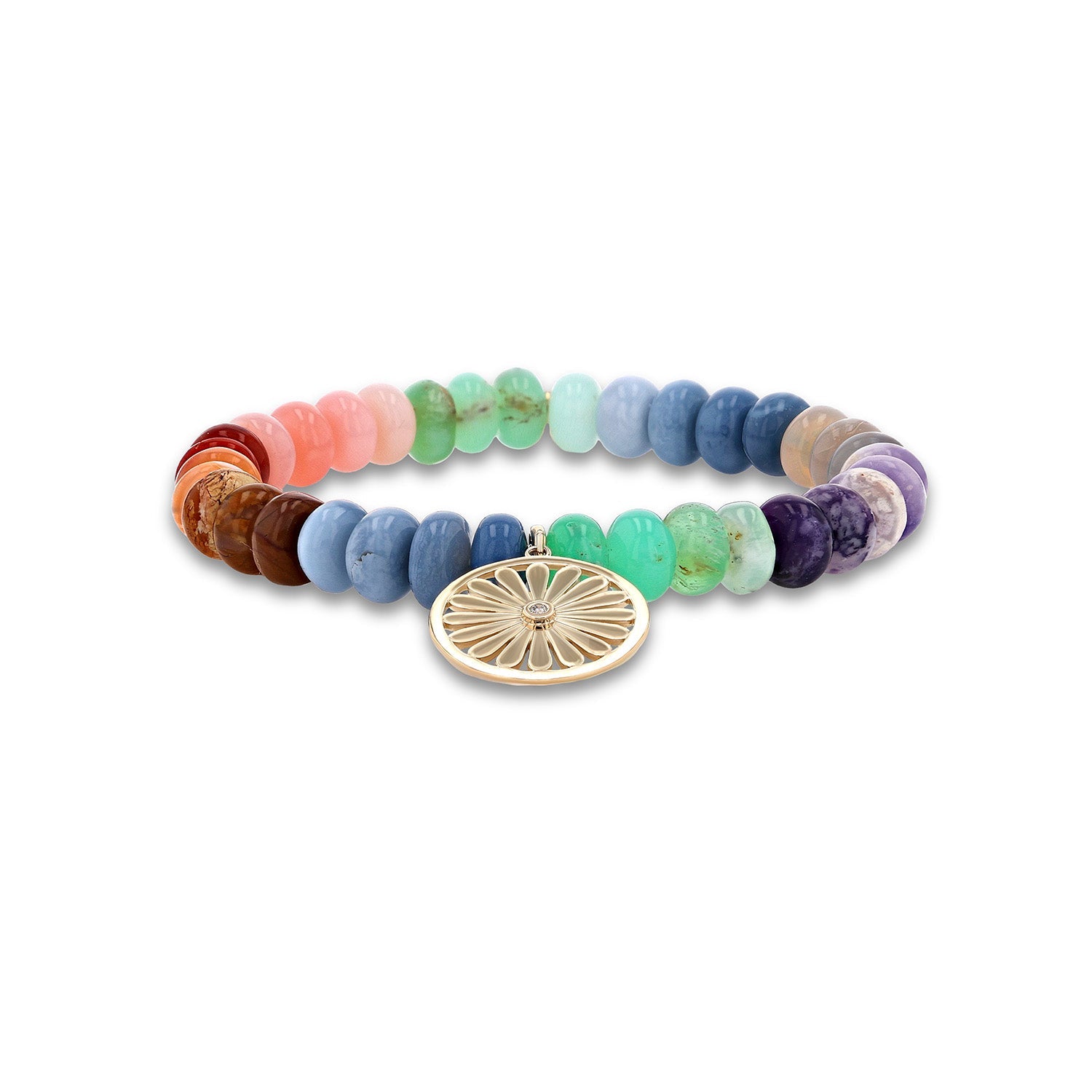 14k Rainbow Opal Mix Bracelet with Daisy Charm - 8mm