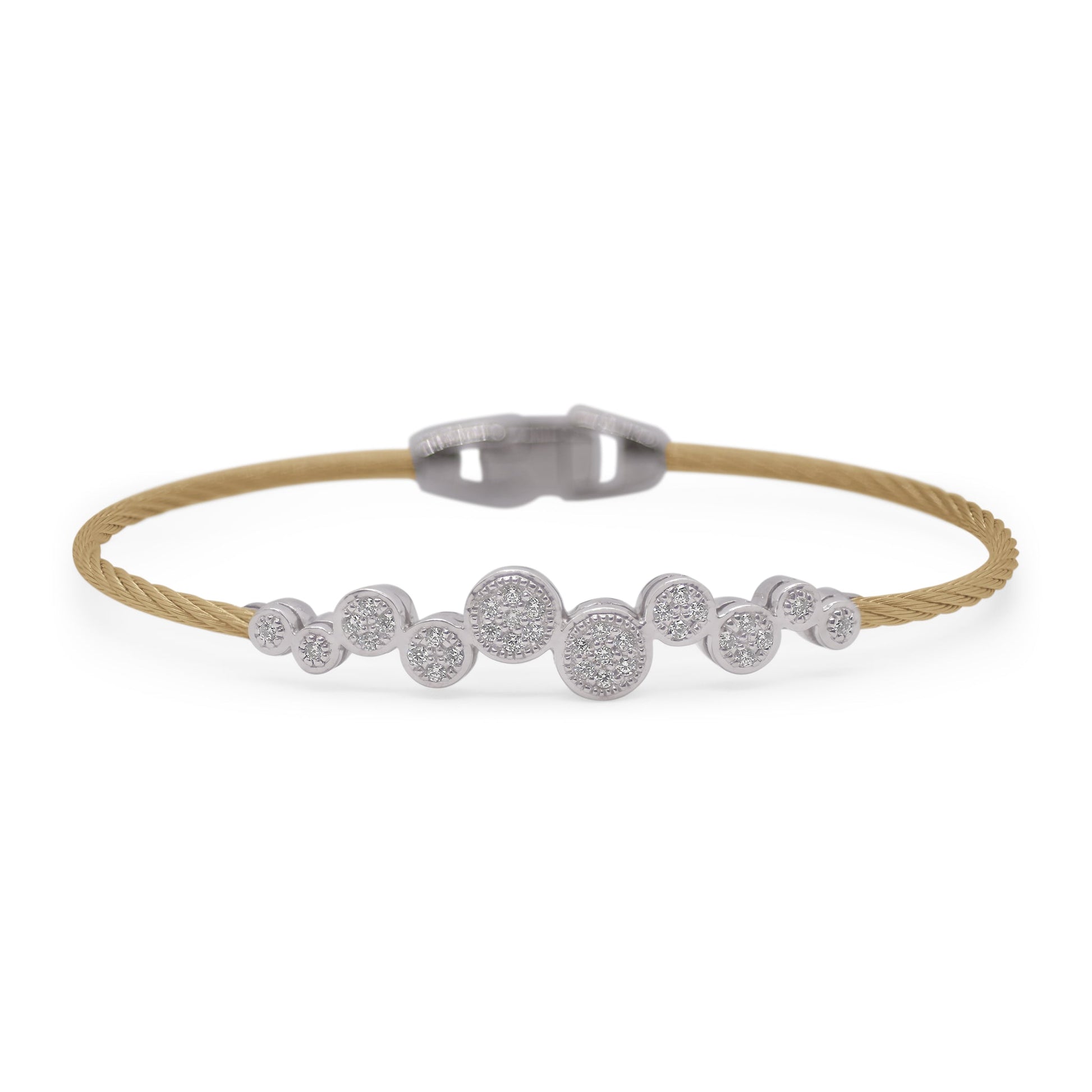 One band of cable with diamonds arranged in a whimsical bubble pattern.