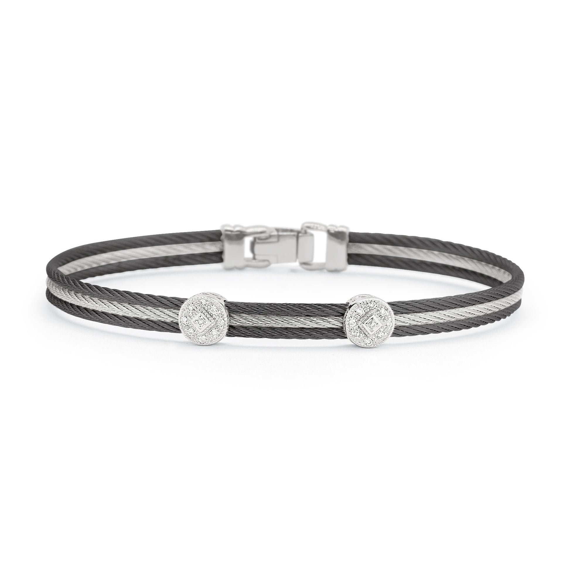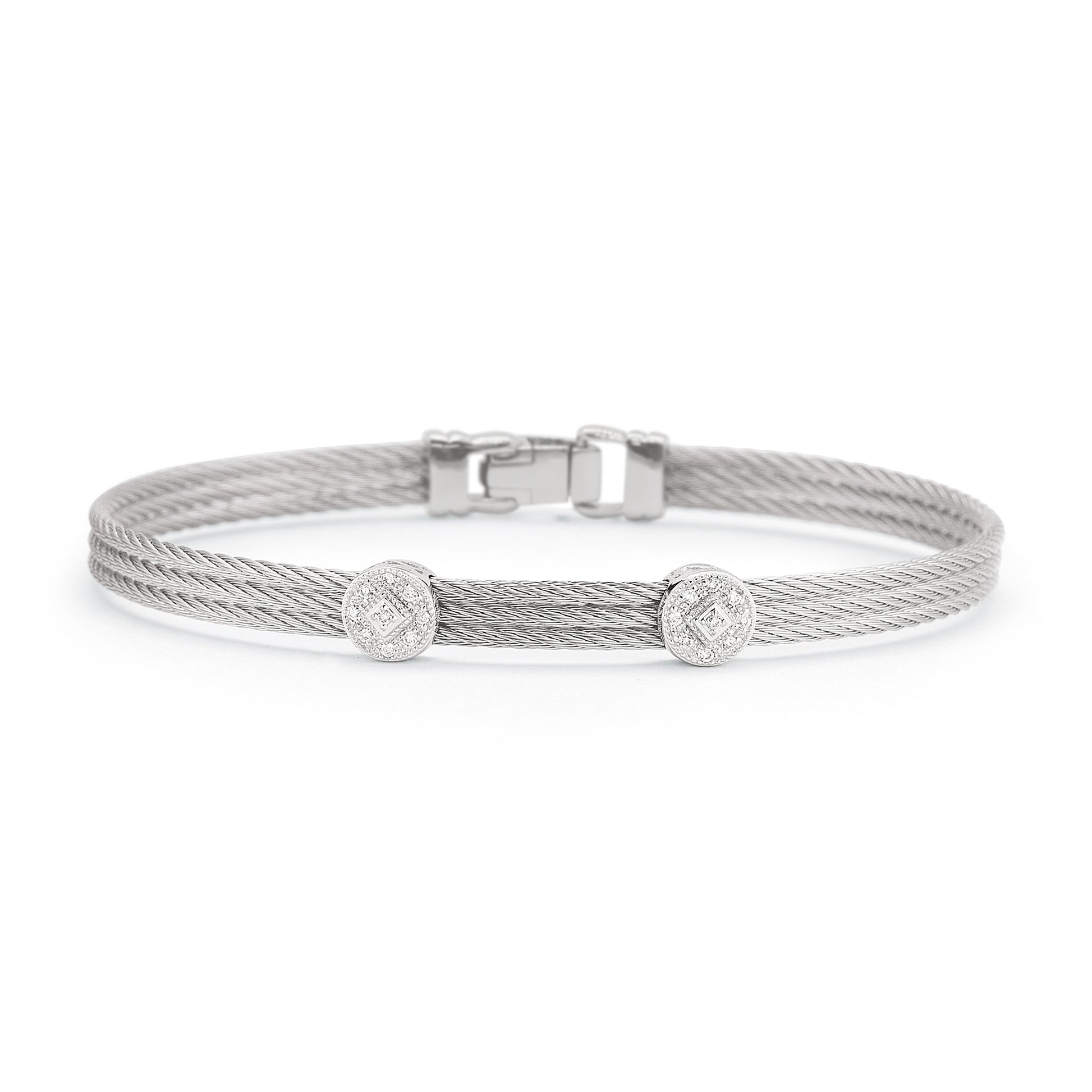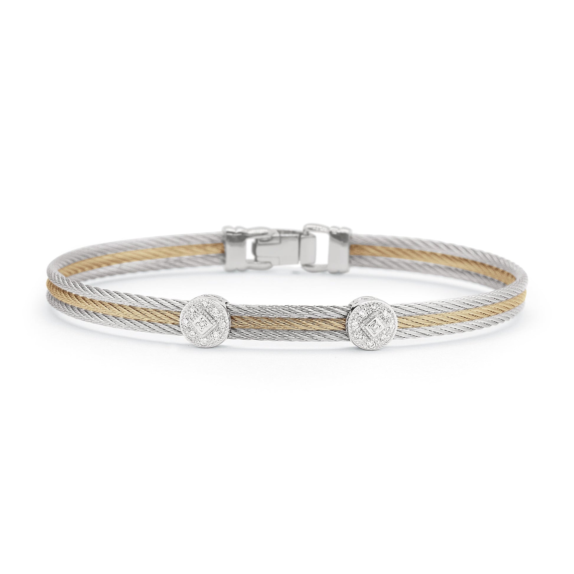 Three rows of cable are fused together with double round stations of diamonds.