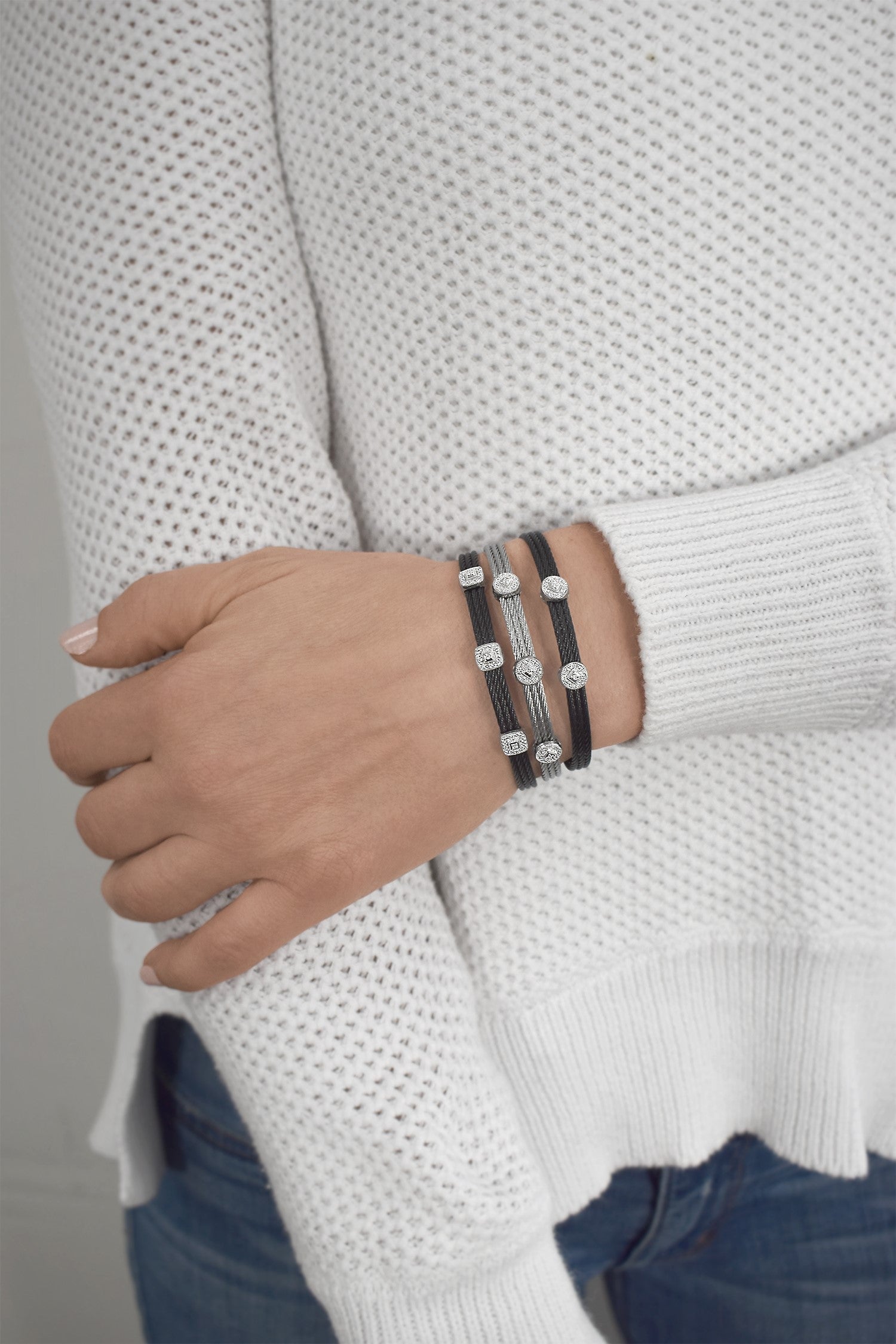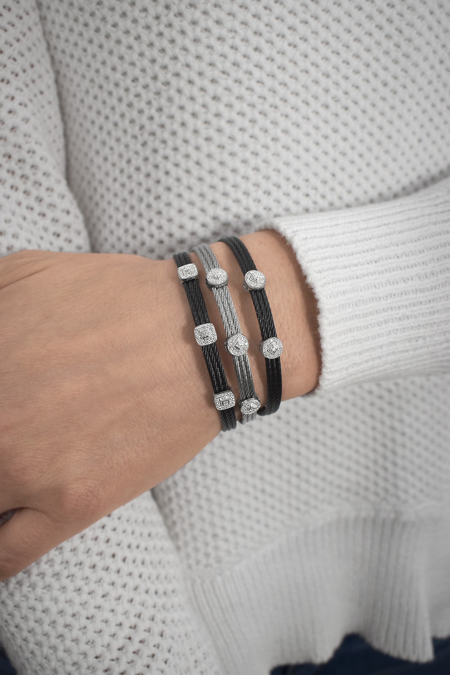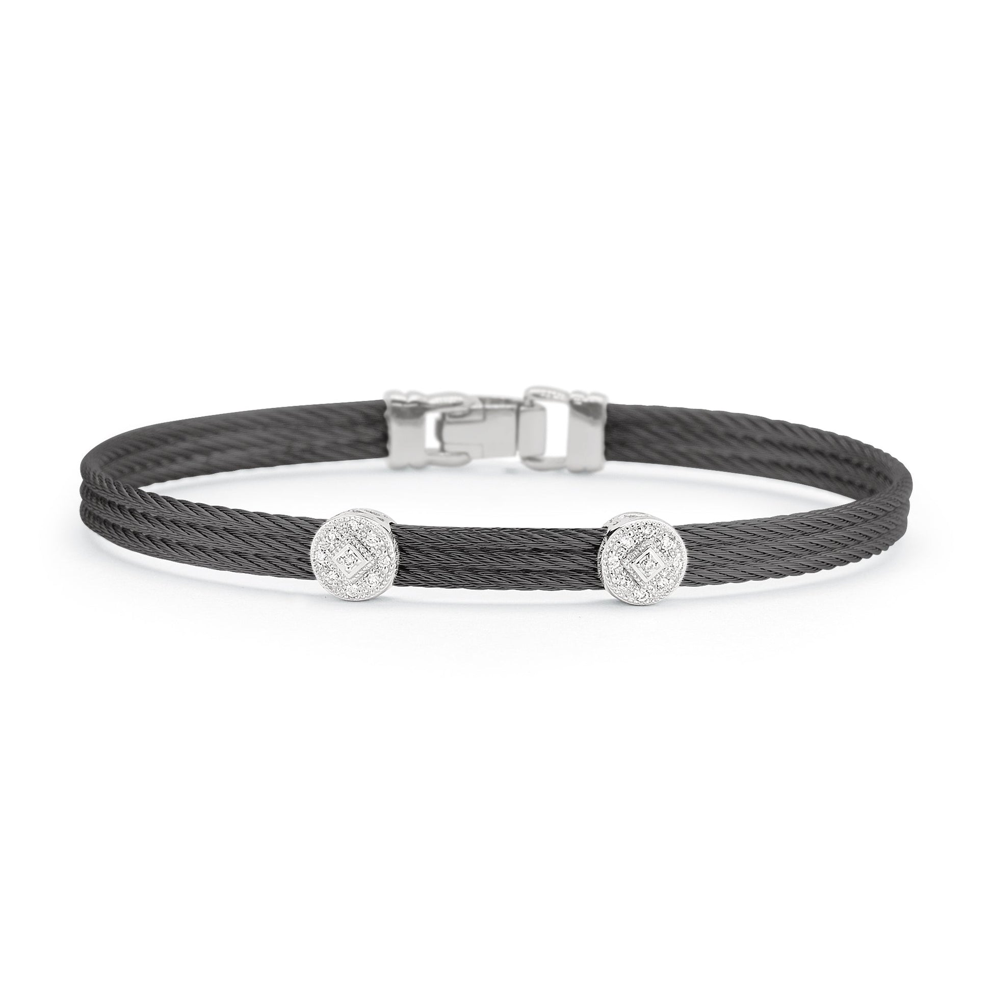 Three rows of cable are fused together with double round stations of diamonds.