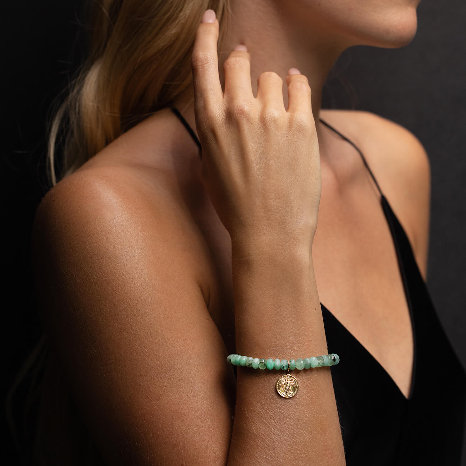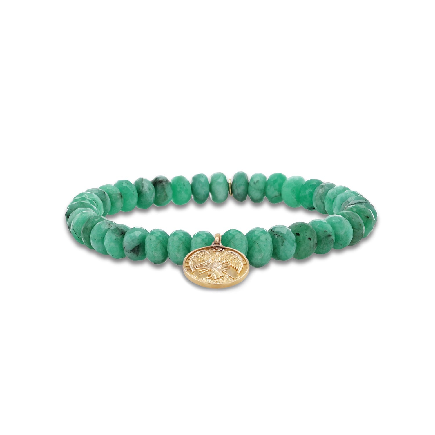 14k Emerald Bracelet with Guardian Angel Charm - 7mm