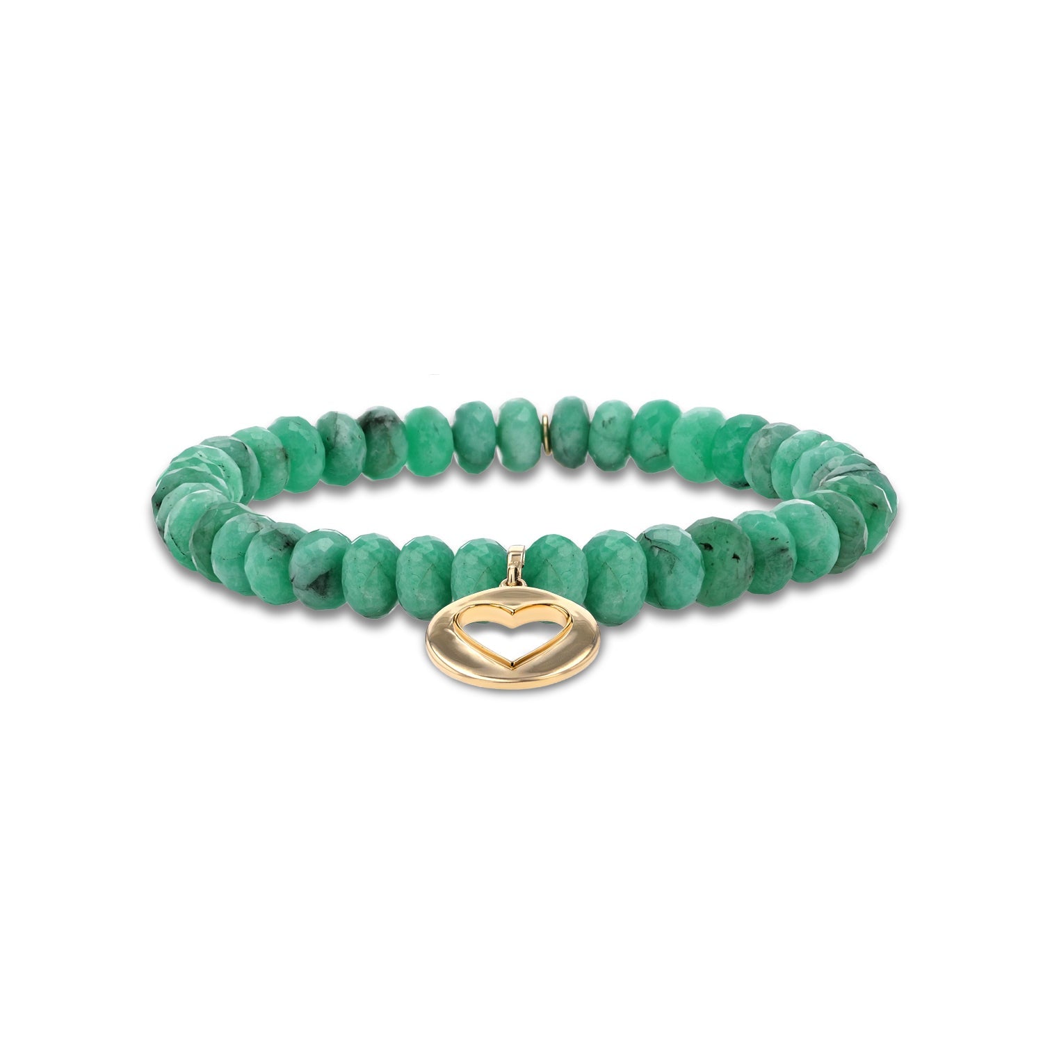 14k Emerald Bracelet with Open Heart Charm - 7mm