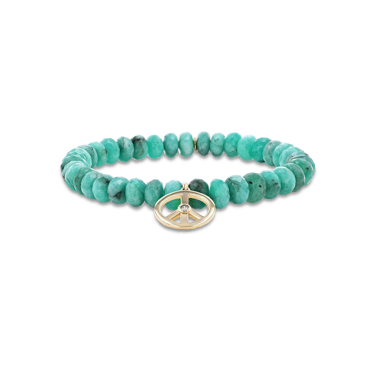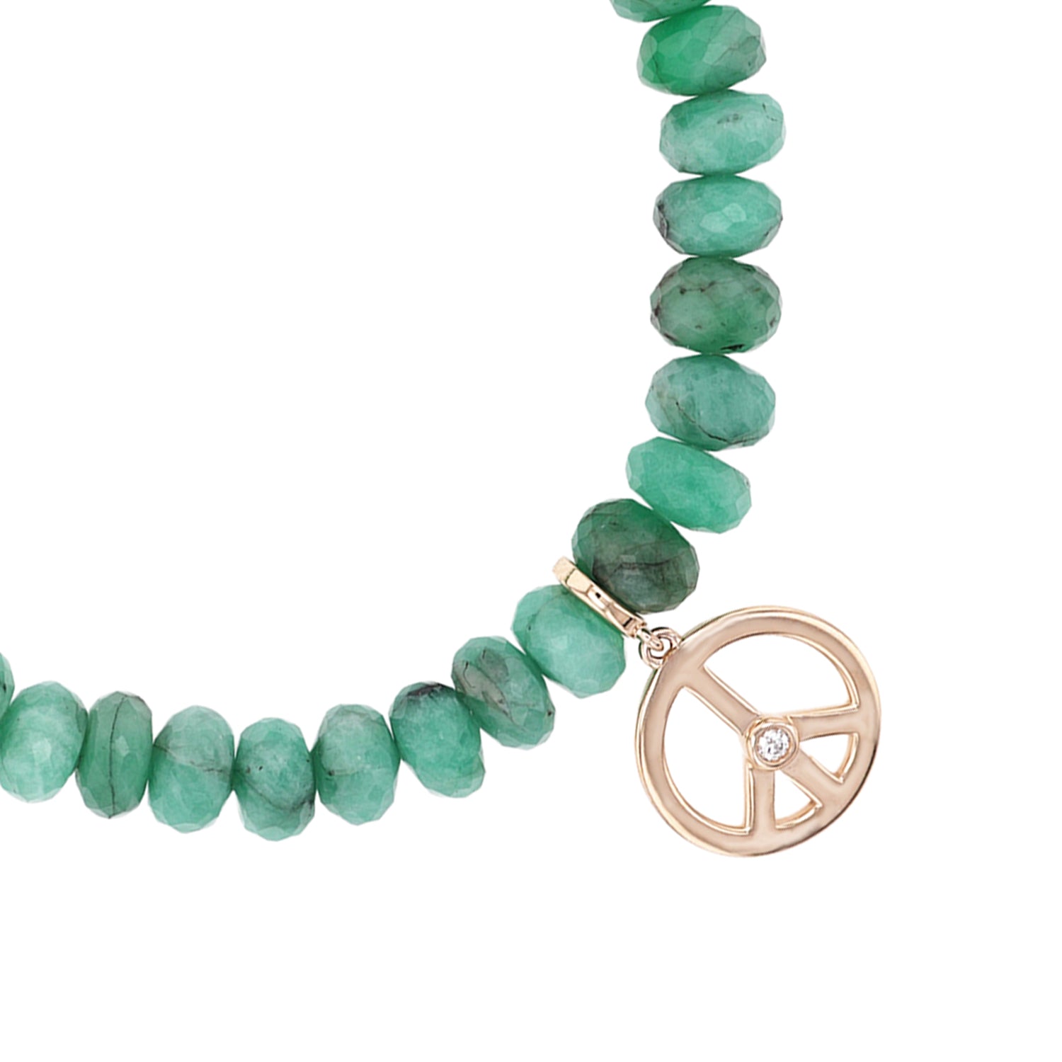 14k Emerald Bracelet with Peace Sign Charm - 7mm