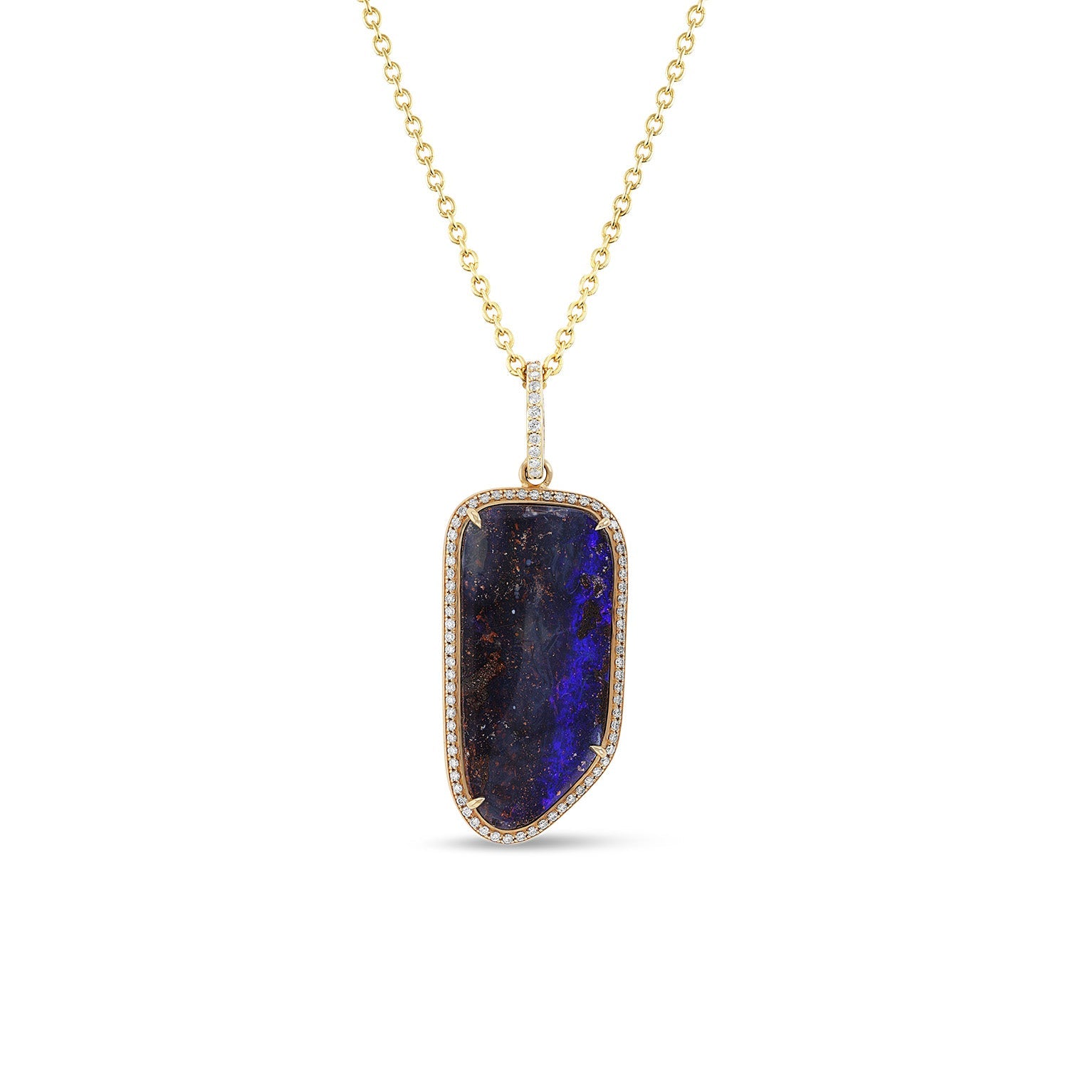 14k Freeform Opal and Diamond Pendant - One of a Kind