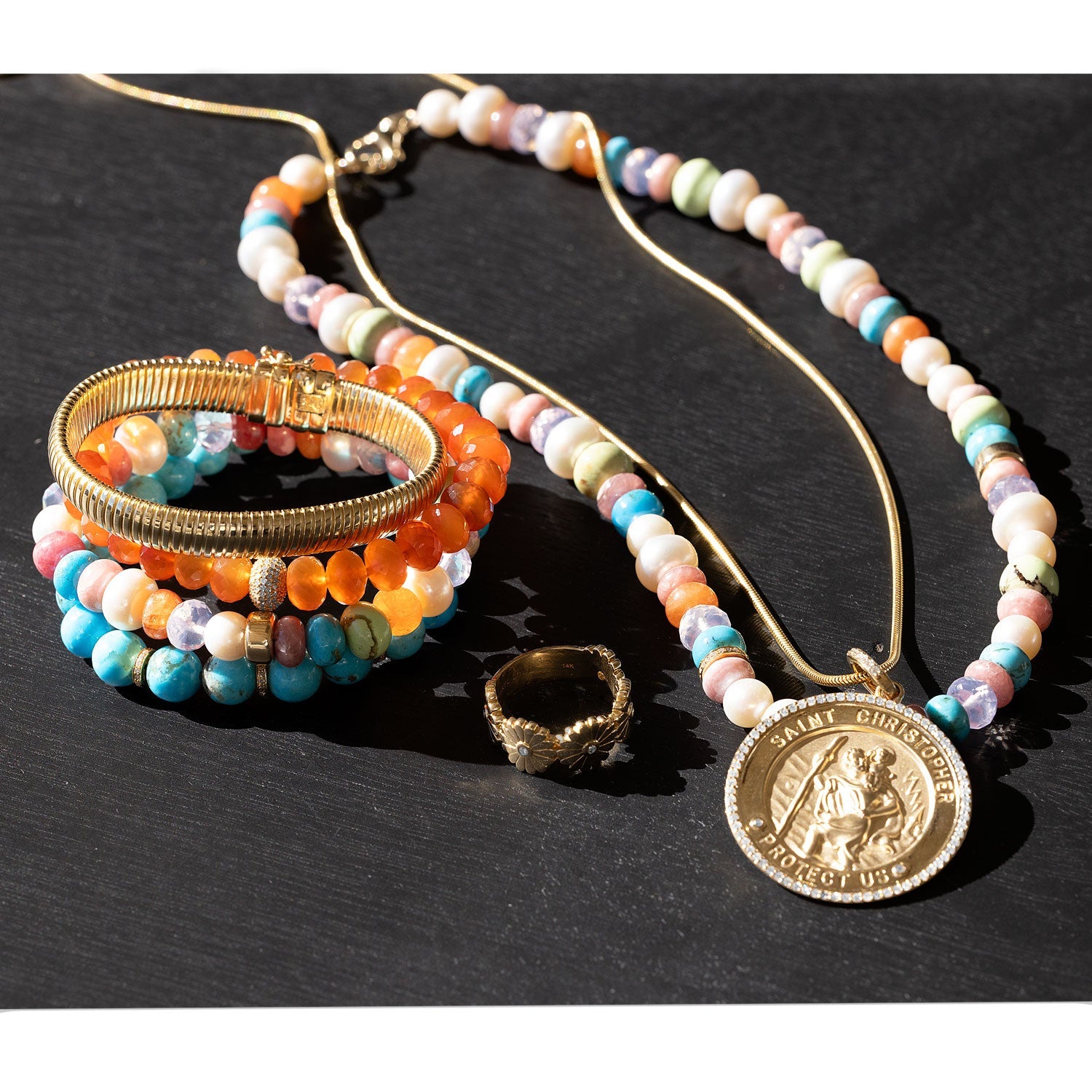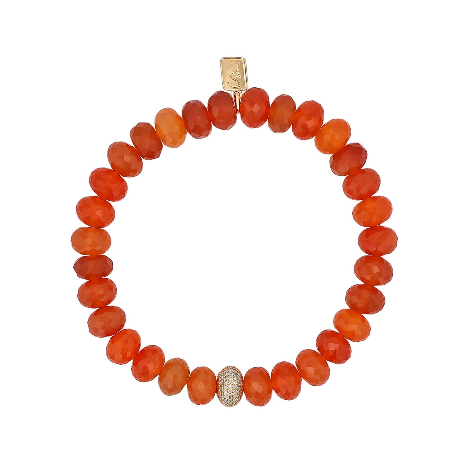 14k Gold Carnelian Beaded Bracelet with Diamond Donut - 8mm