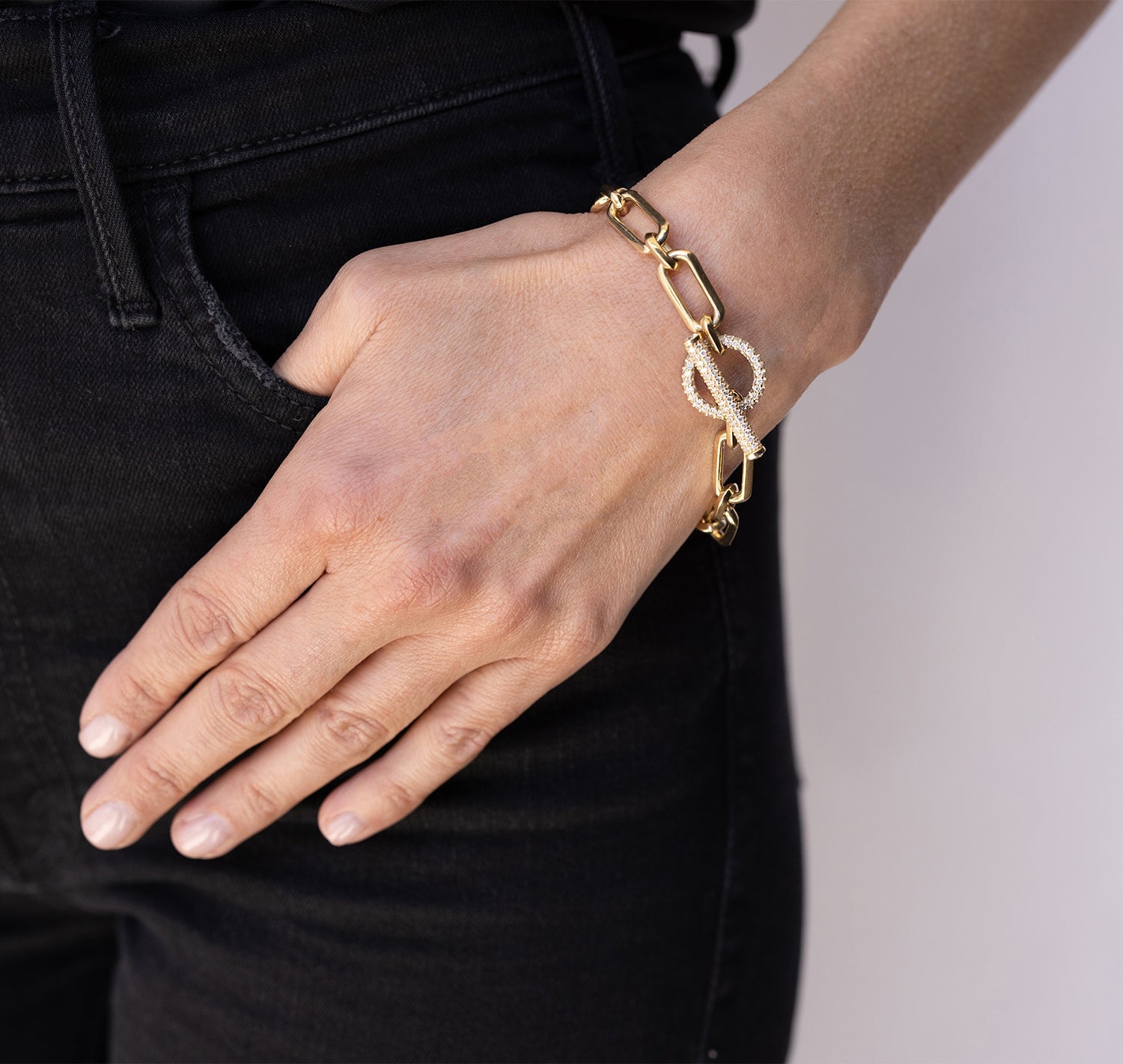 14K Gold Gwyneth Link Diamond and Sapphire Toggle Bracelet