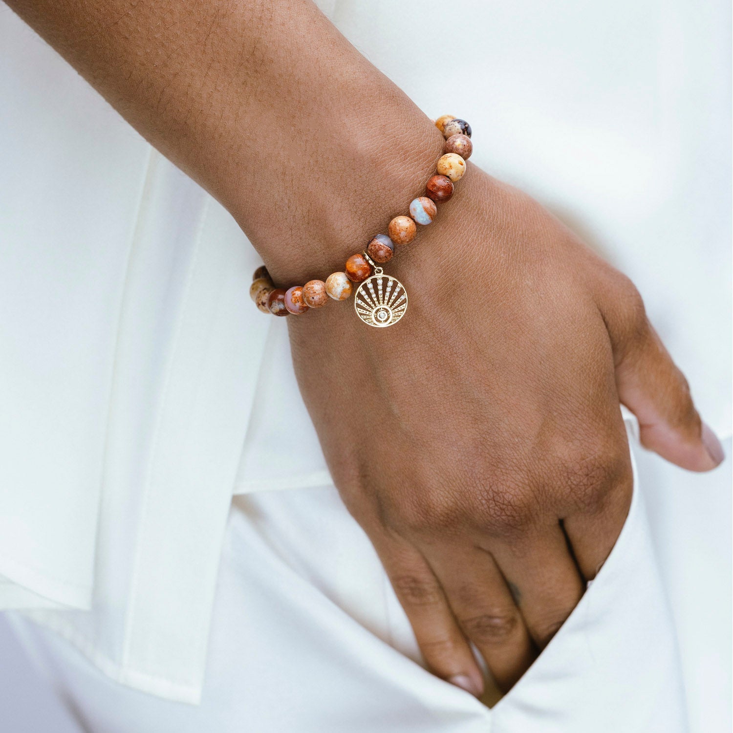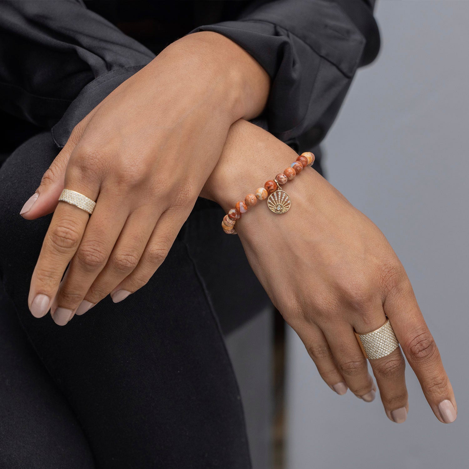 14k Mexican Fire Opal Bracelet with Diamond Sunrise Charm