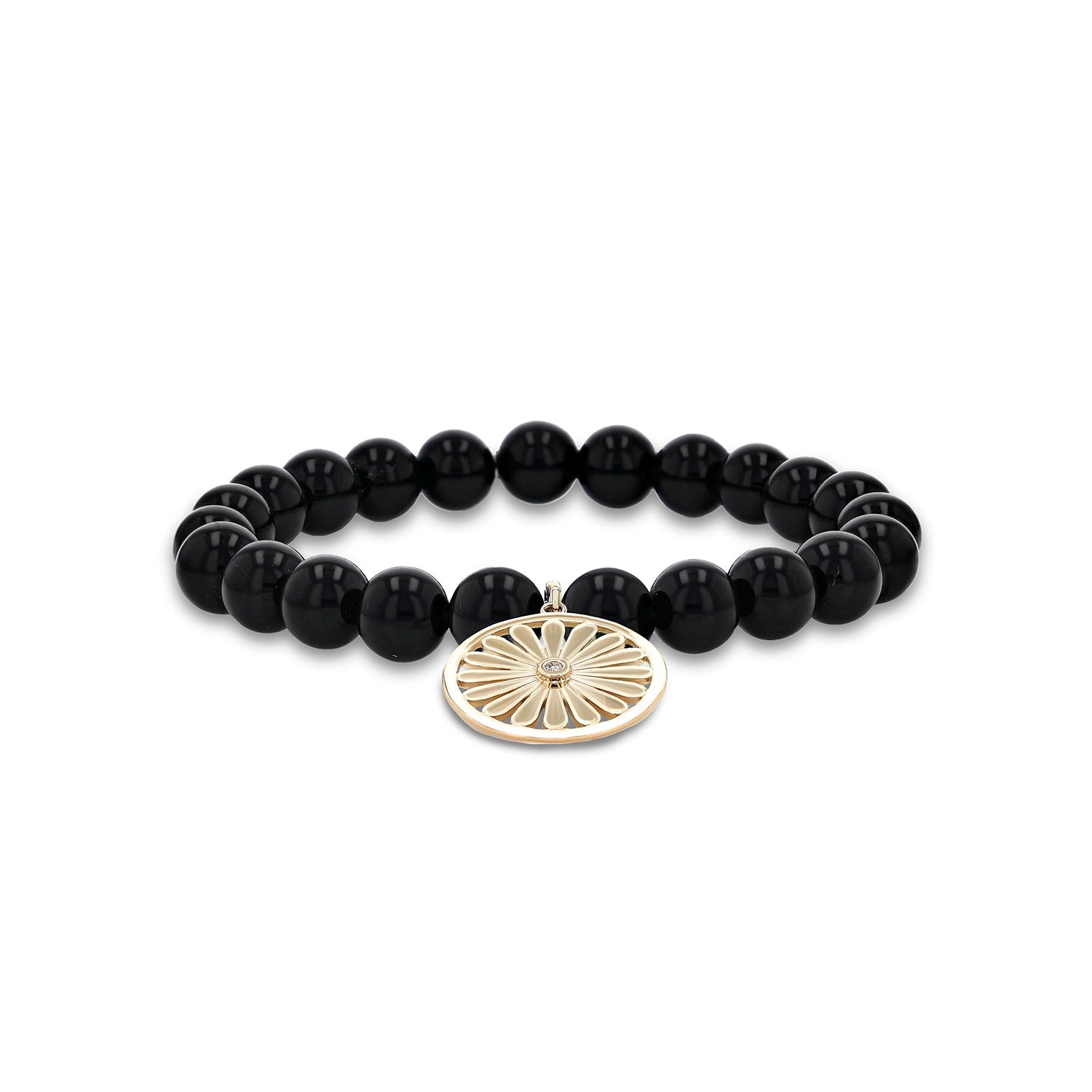 14k Onyx Bracelet with Daisy Charm - 8mm