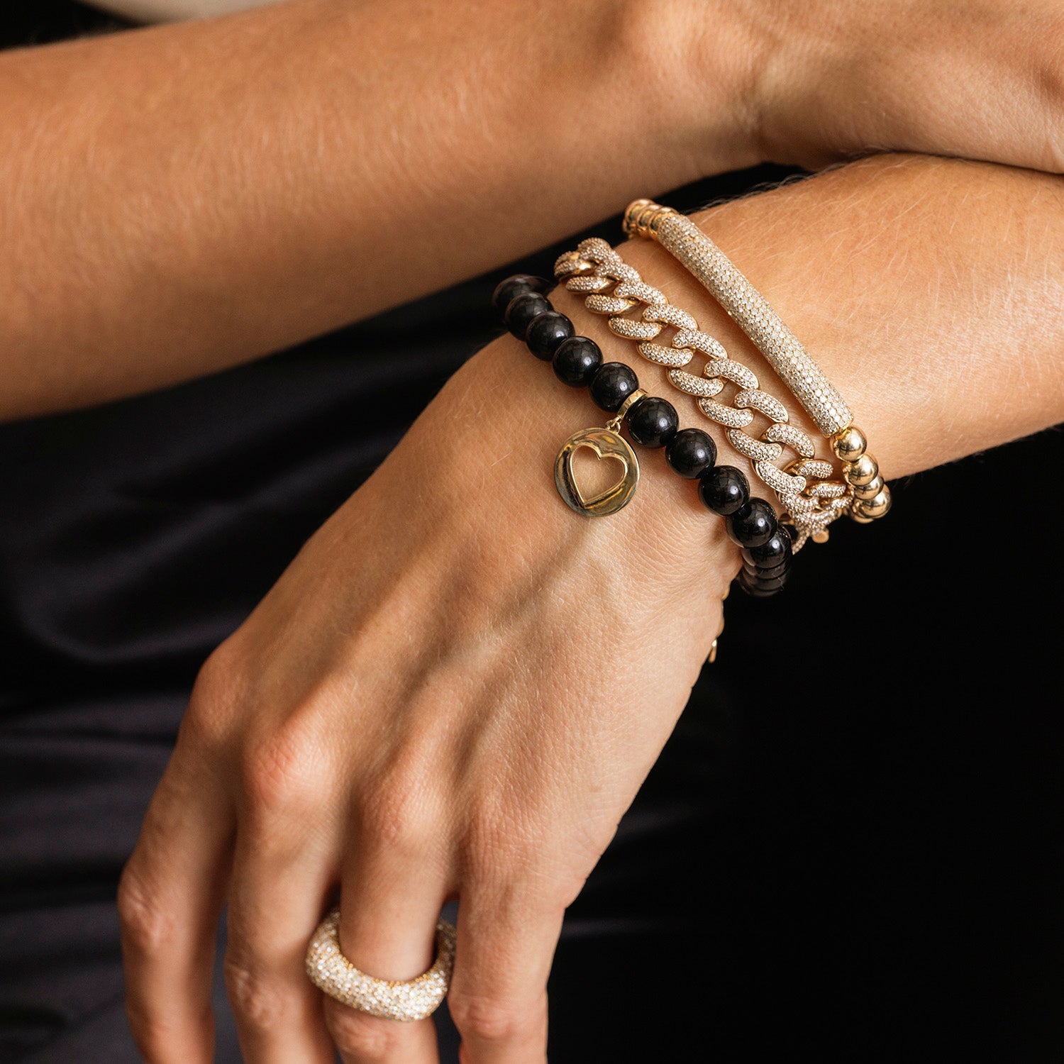 14k Onyx Bracelet with Open Heart Charm - 8mm