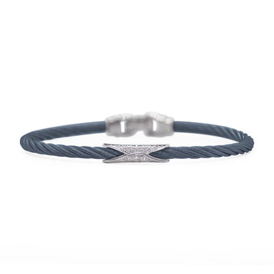 Lady's Two-Tone 18Kt/Stainless Steel Pvd Cable Bracelet Length 6.5 With 0.07Tw Round G/H In Color Si-1 In Clarity Diamonds, BY ALOR #04-37-3074-11
