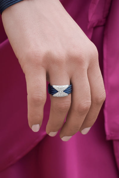 Lady's Two-Tone 18Kt/Stainless Steel Pvd Cable Fashion Ring Size 7 With = 0.16Tw Round G/H In Color Si Diamonds, BY ALOR #02-52-2074-11