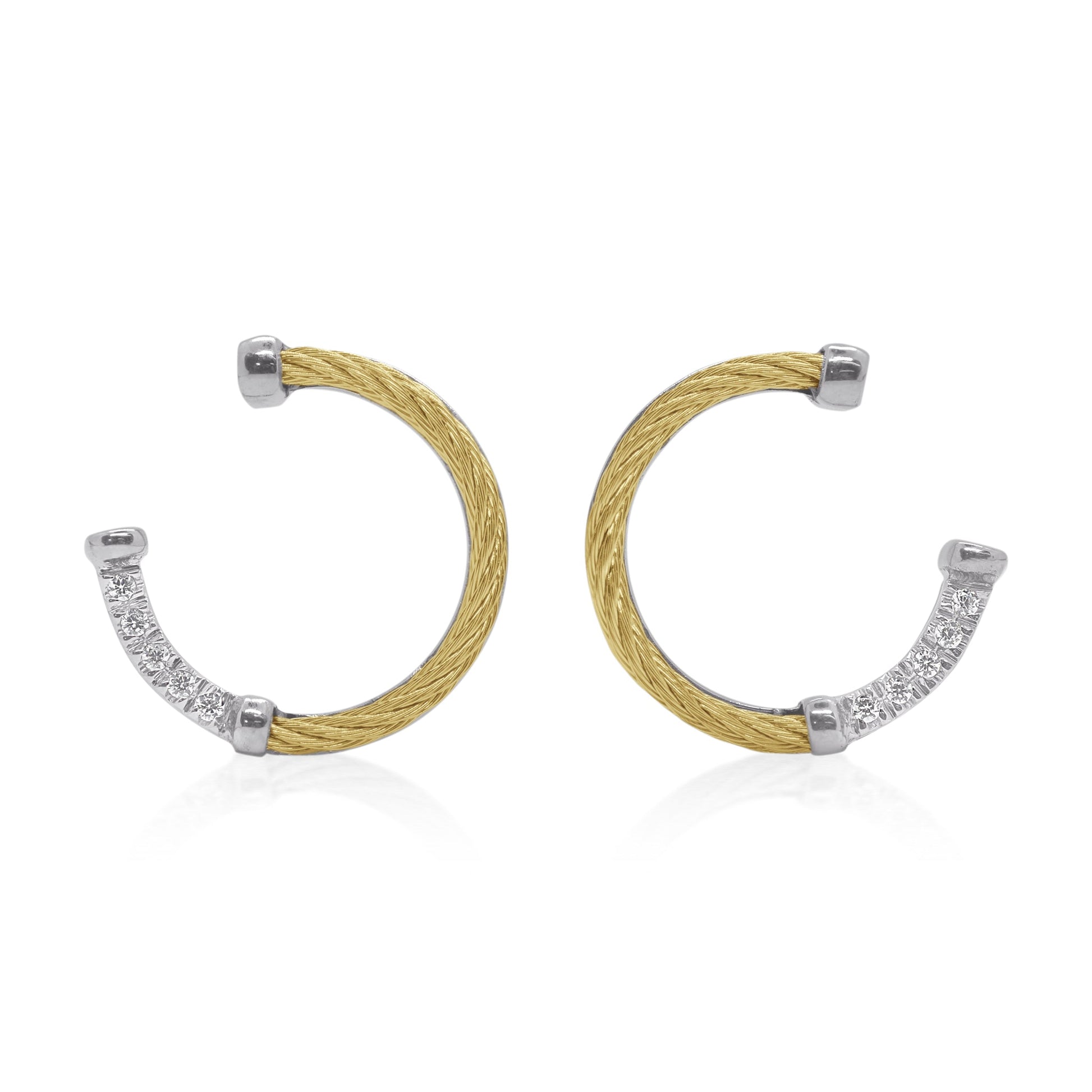 A 3/4 open circle stud earring with 1/4 of diamonds.