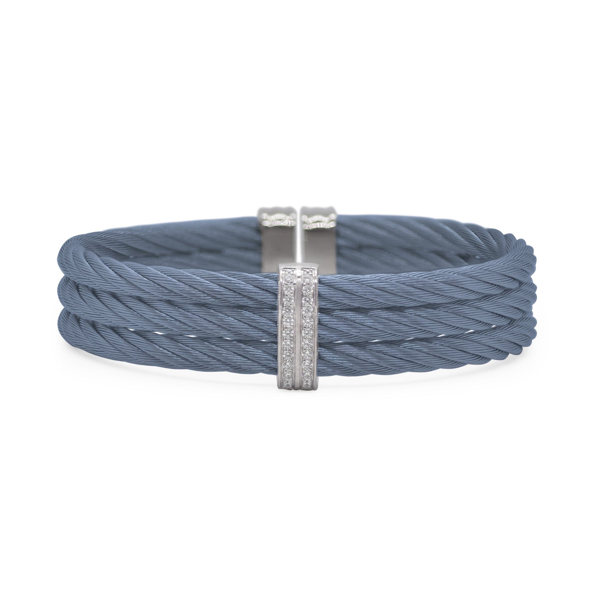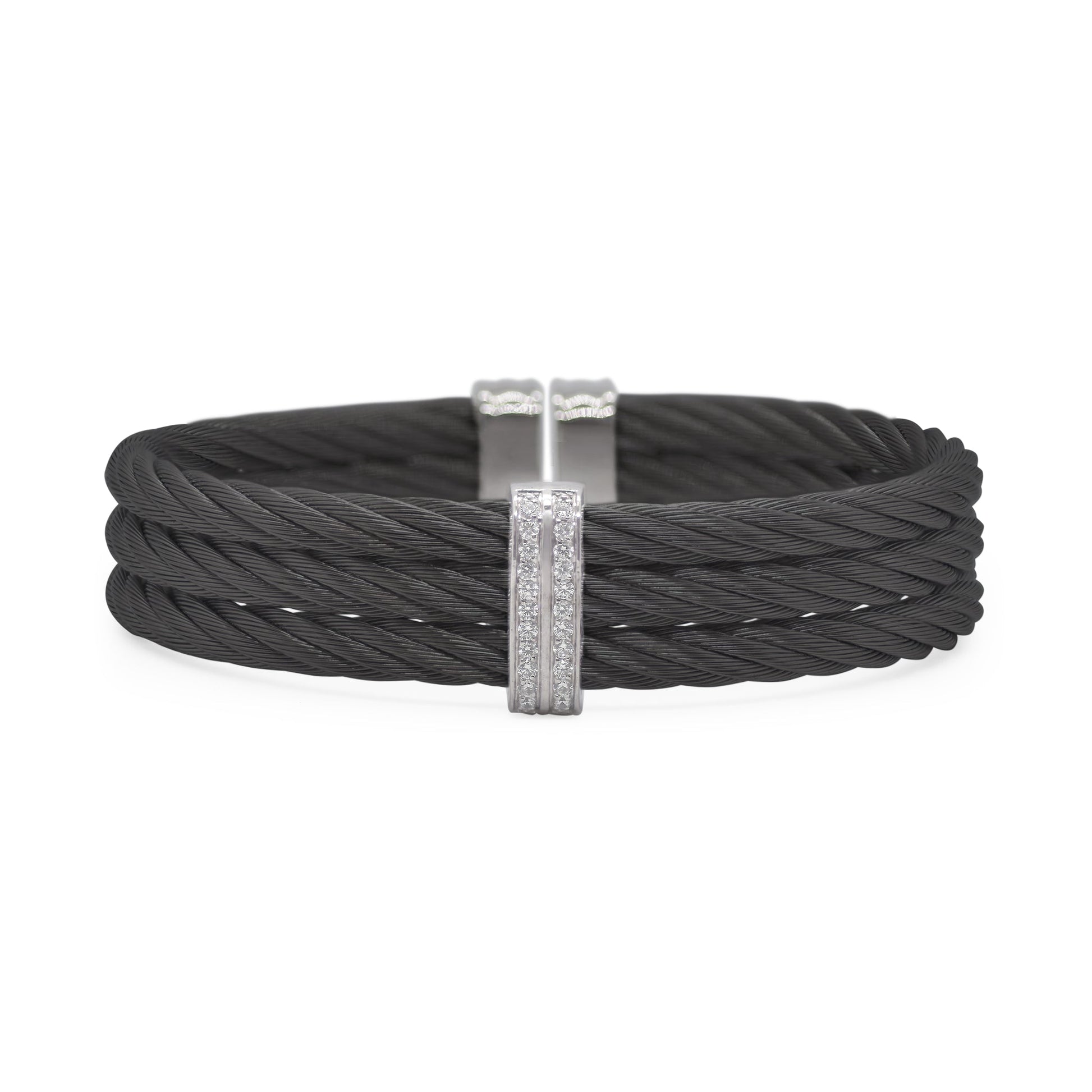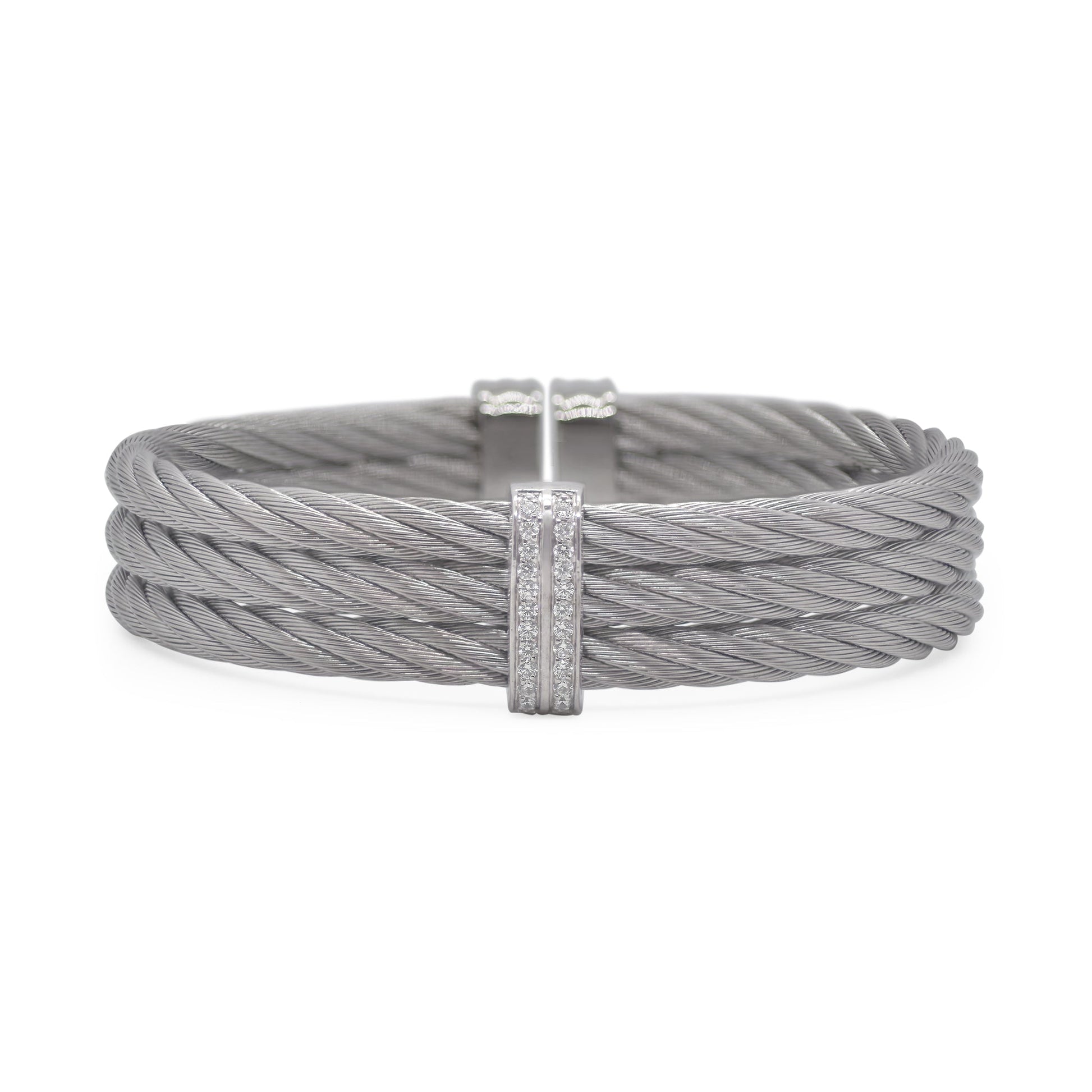 Three rows of thick cable are fused together with a center bar of diamonds.