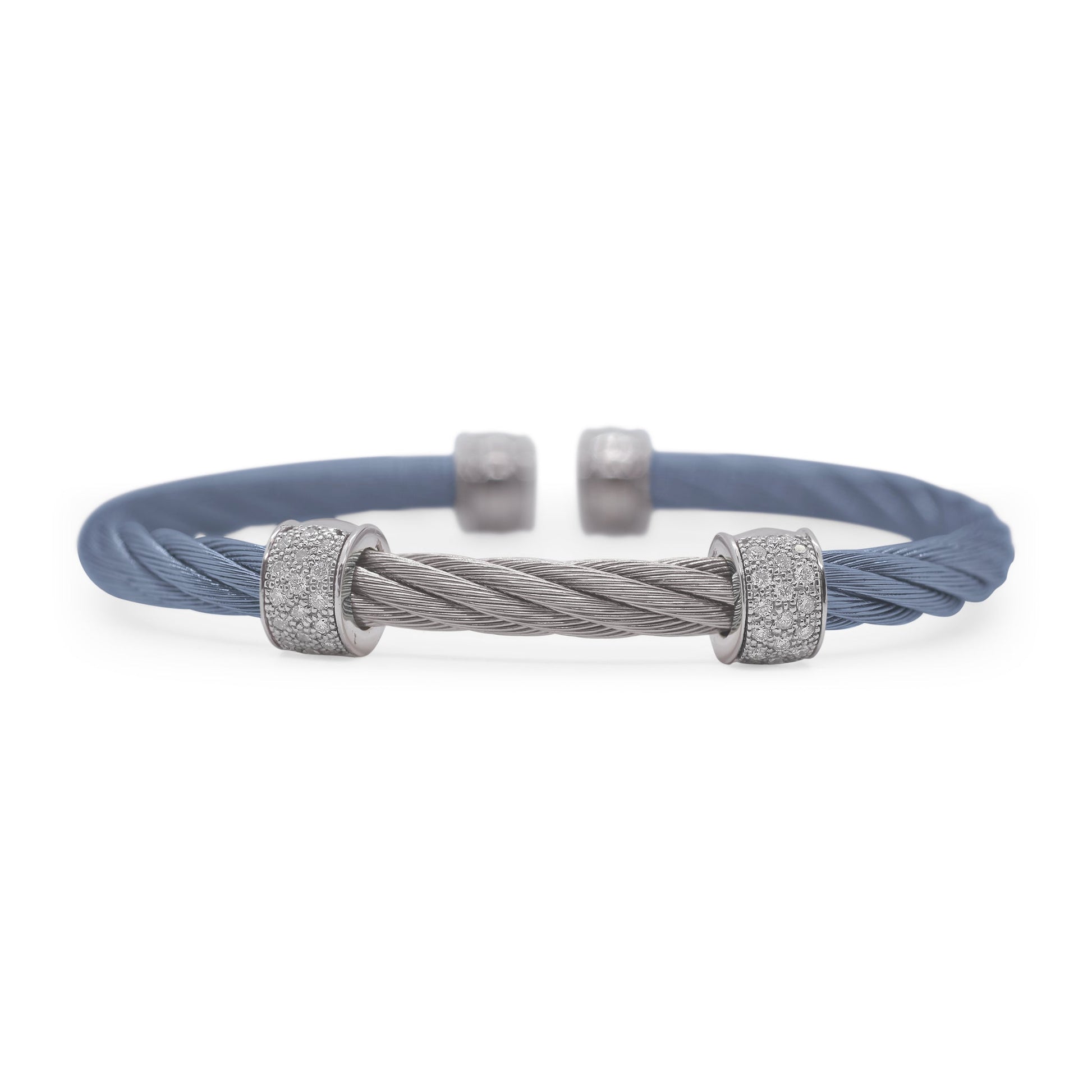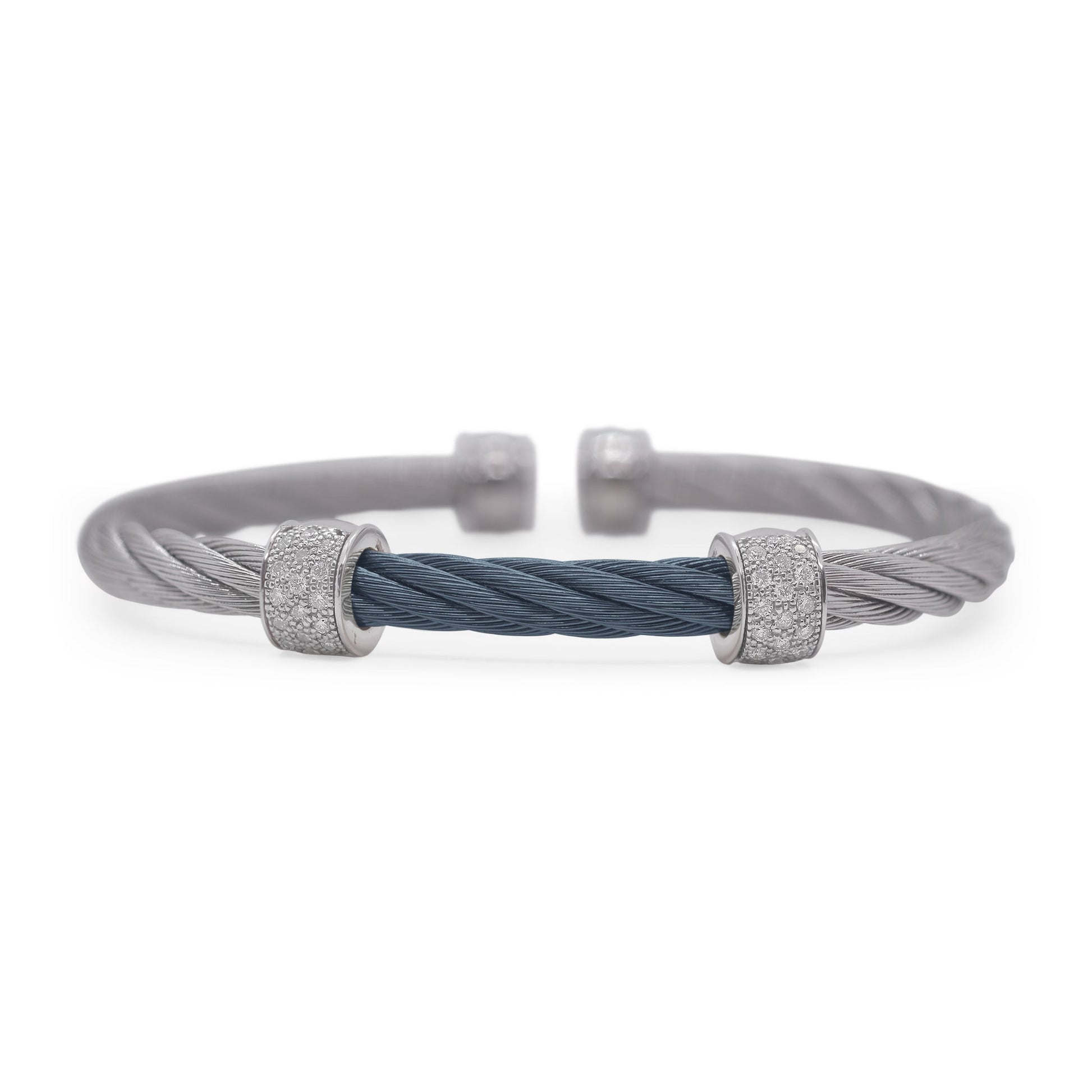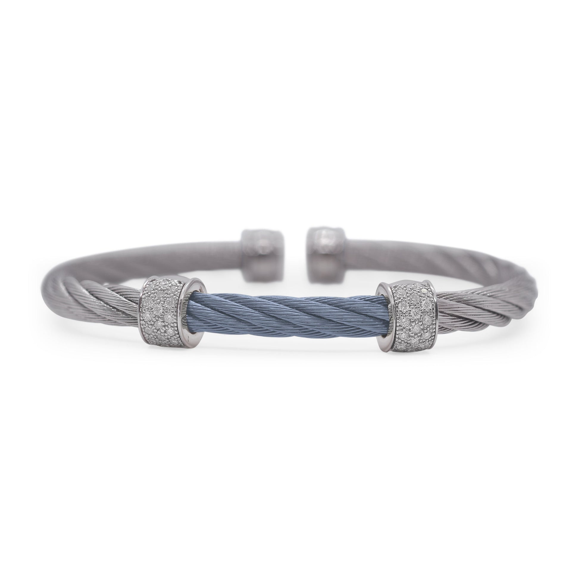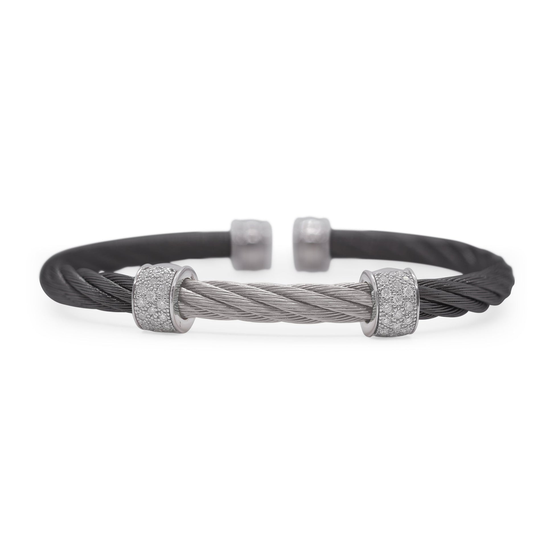 Two-tones of cable come together on a 5mm cuff with double barrels of diamonds to create an ID cuff.
