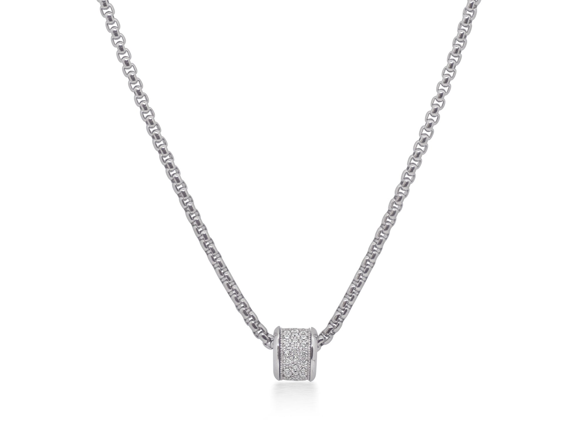 Lady's White 14Kt WG/ Grey Stainless Steel Choker 15-17 Necklace 16.5" With 0.33Tw Barrell Charm Round H In Color Si Diamonds
