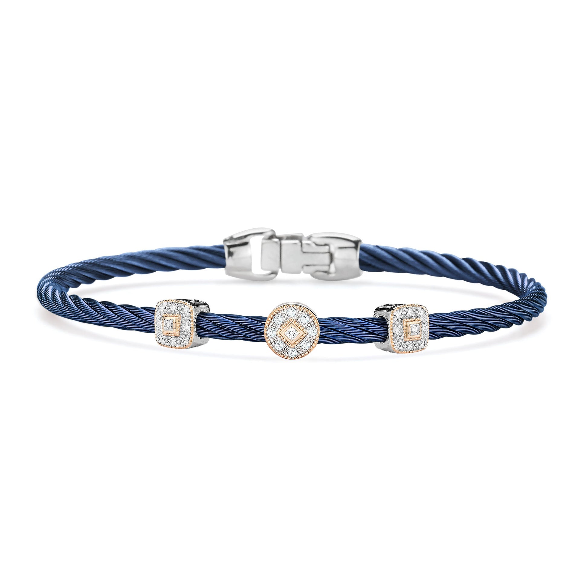 A single band of 3mm cable with one round and two square stations of diamonds.