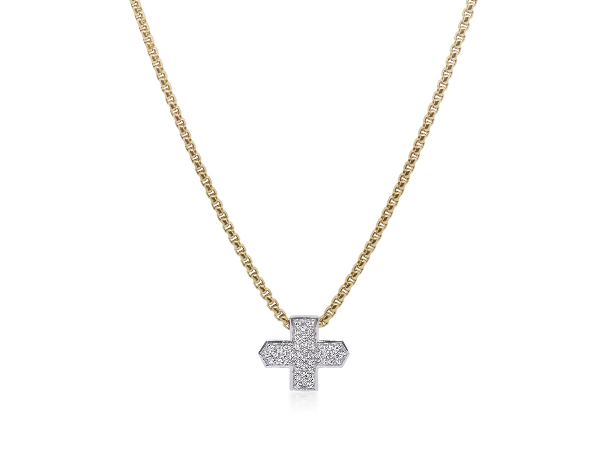 Lady's Two-Tone 14Kt WG/ Yellow Stainless Steel Cross Pendant Length 17 With 50=0.36Tw Round H In Color Si Diamonds