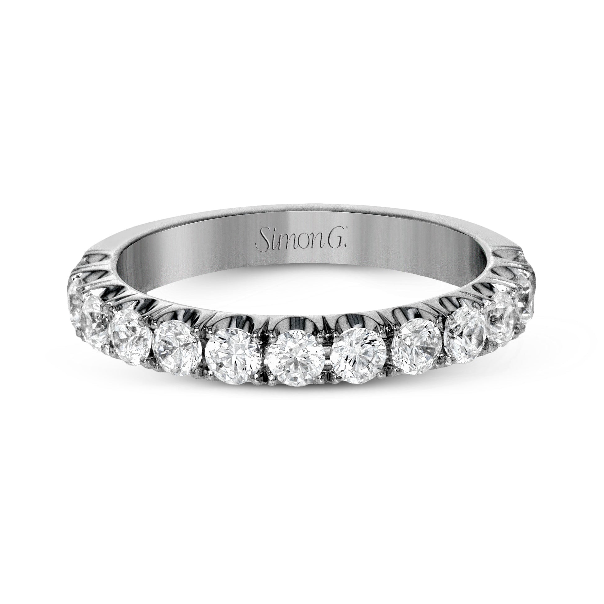 This lovely band shines with sparkling white diamonds in an intricate setting.