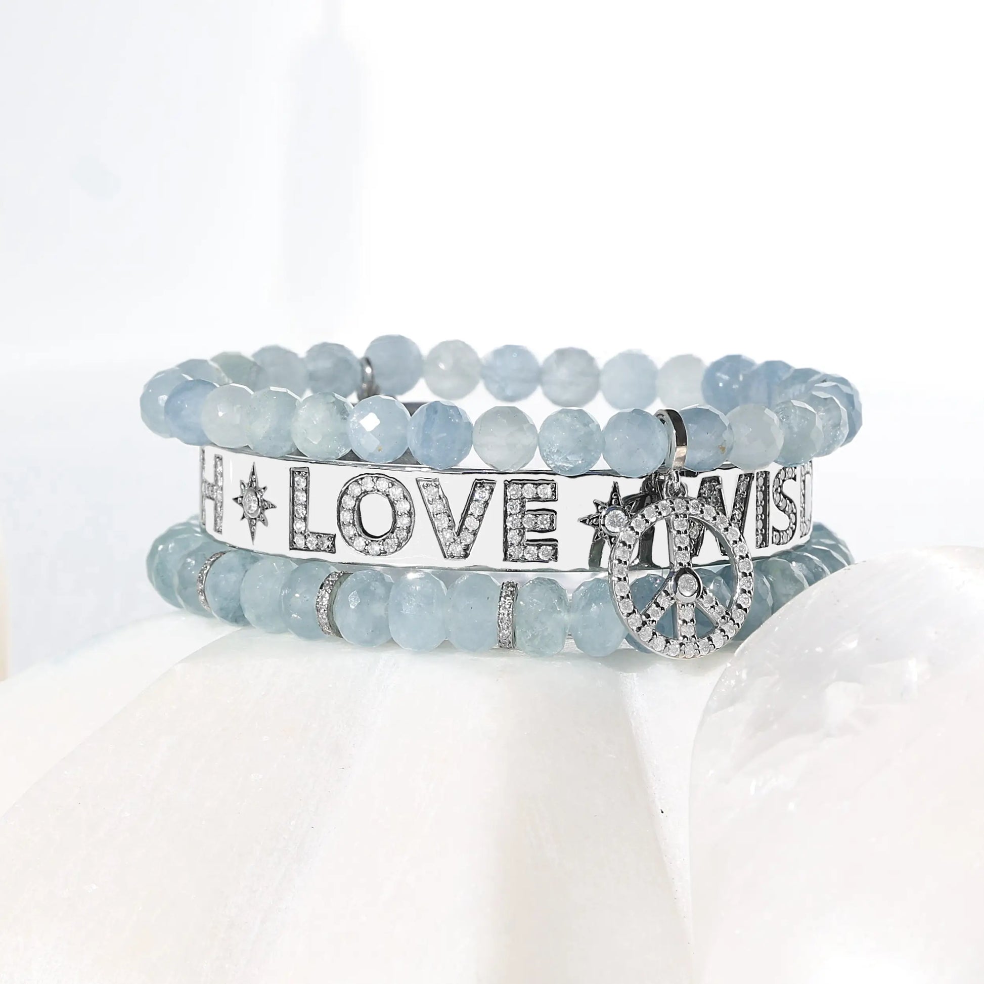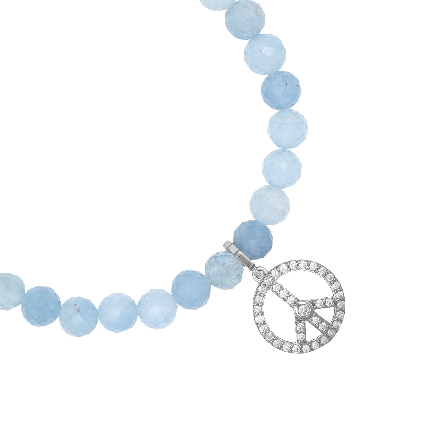 Aquamarine Bracelet with Diamond Peace Sign Charm - 6mm